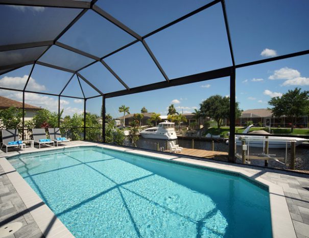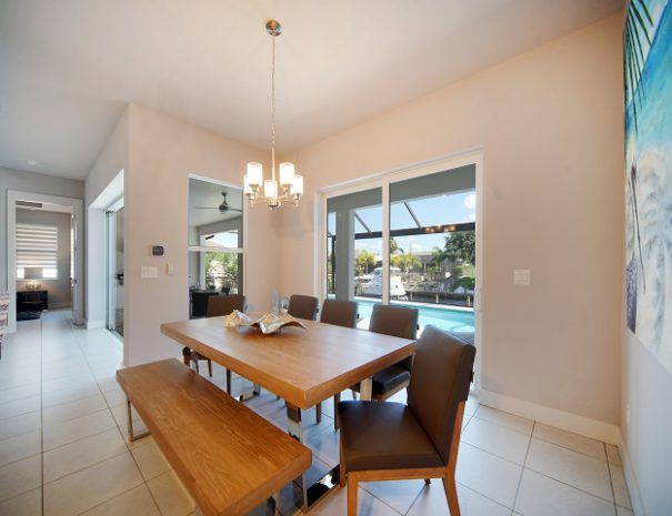 This fully air-conditioned villa has 4 bedrooms, 3 bathrooms with a spacious 2250 sqft floor plan. It is located in the southeast of Cape Coral on a wide, quiet canal.