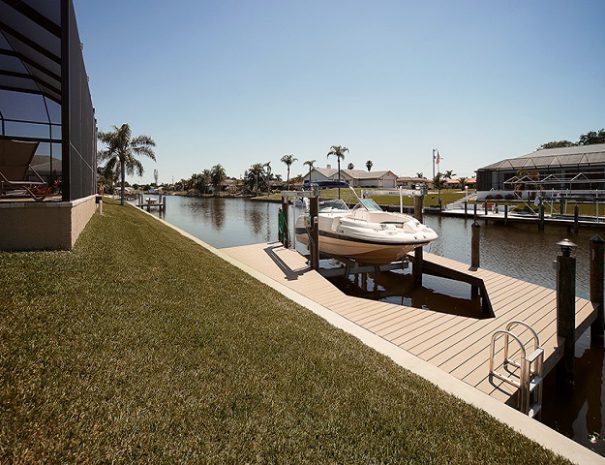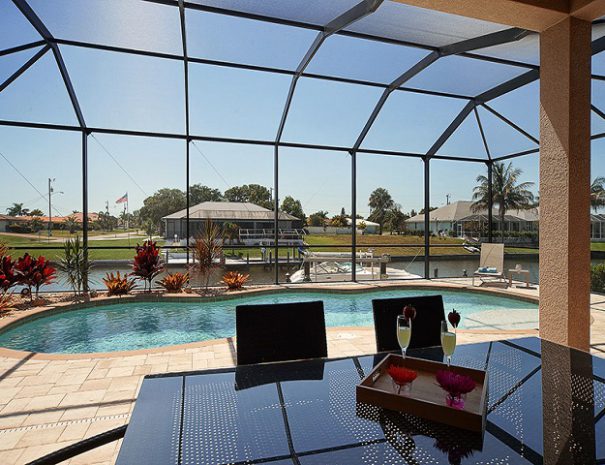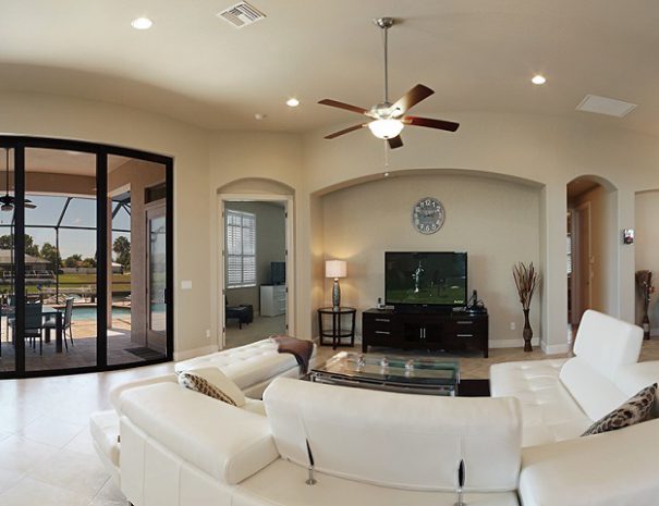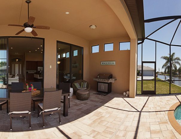 Die Villa Cape Star wurde sehr stilvoll mit kontemporären Möbeln und Design-Akzenten eingerichtet. Sie bietet 3 Schlafzimmer (jedes mit einem 42″ Fernseher), 3 Bäder und einen großen Wohnbereich, der durch hochragende Zimmerdecken besonders luftig wirkt. Der Pool kann elektrisch beheizt werden. Die große Terrasse liegt nach Westen und überblickt den breiten Kanal mit Golfzugang. Ein Bootsdock (exkl. Boot & Bootslift) steht für die Mieter zur Verfügung. Das Haus ist komplett eingerichtet und darüber hinaus mit hochwertigem technischem Equipment ausgestattet, wie z.B. einem Home Theater System mit Bluetooth-Verbindung, 60″ Flachbild-TV mit HDTV im Wohnzimmer, Anschlussmöglichkeiten für Laptop/iPad etc. über HDMI und AppleTV mit Airplay Funktion. Ein Wecker mit Bluetooth-Verbindung für mobile Geräte befindet sich in jedem Schlafzimmer. Dank der recht zentralen Lage unweit des Country Club Blvd sind zahlreiche Geschäfte, Golfplätze und Restaurants in wenigen Minuten mit dem Auto zu erreichen.