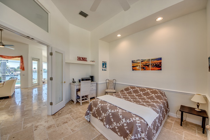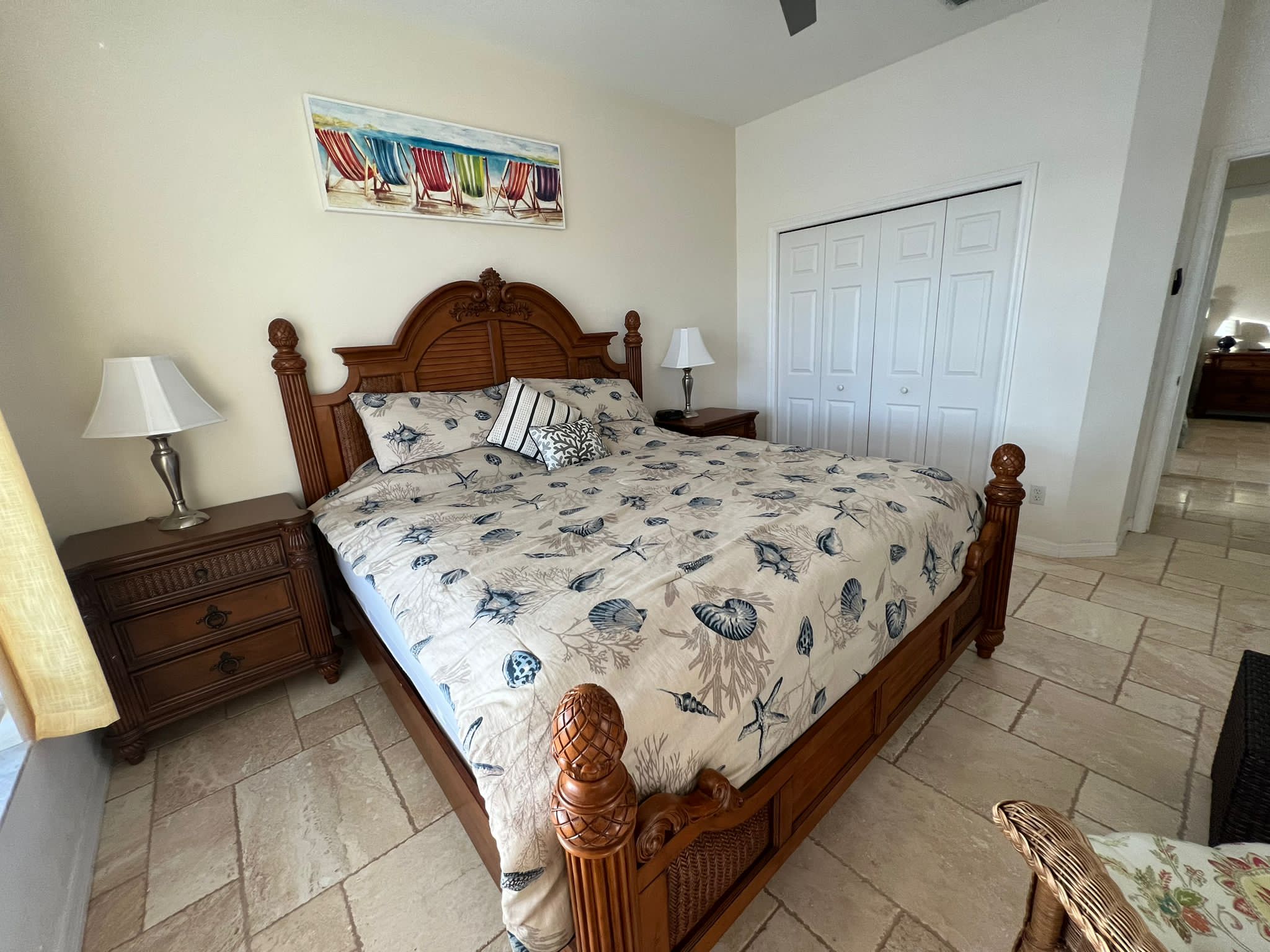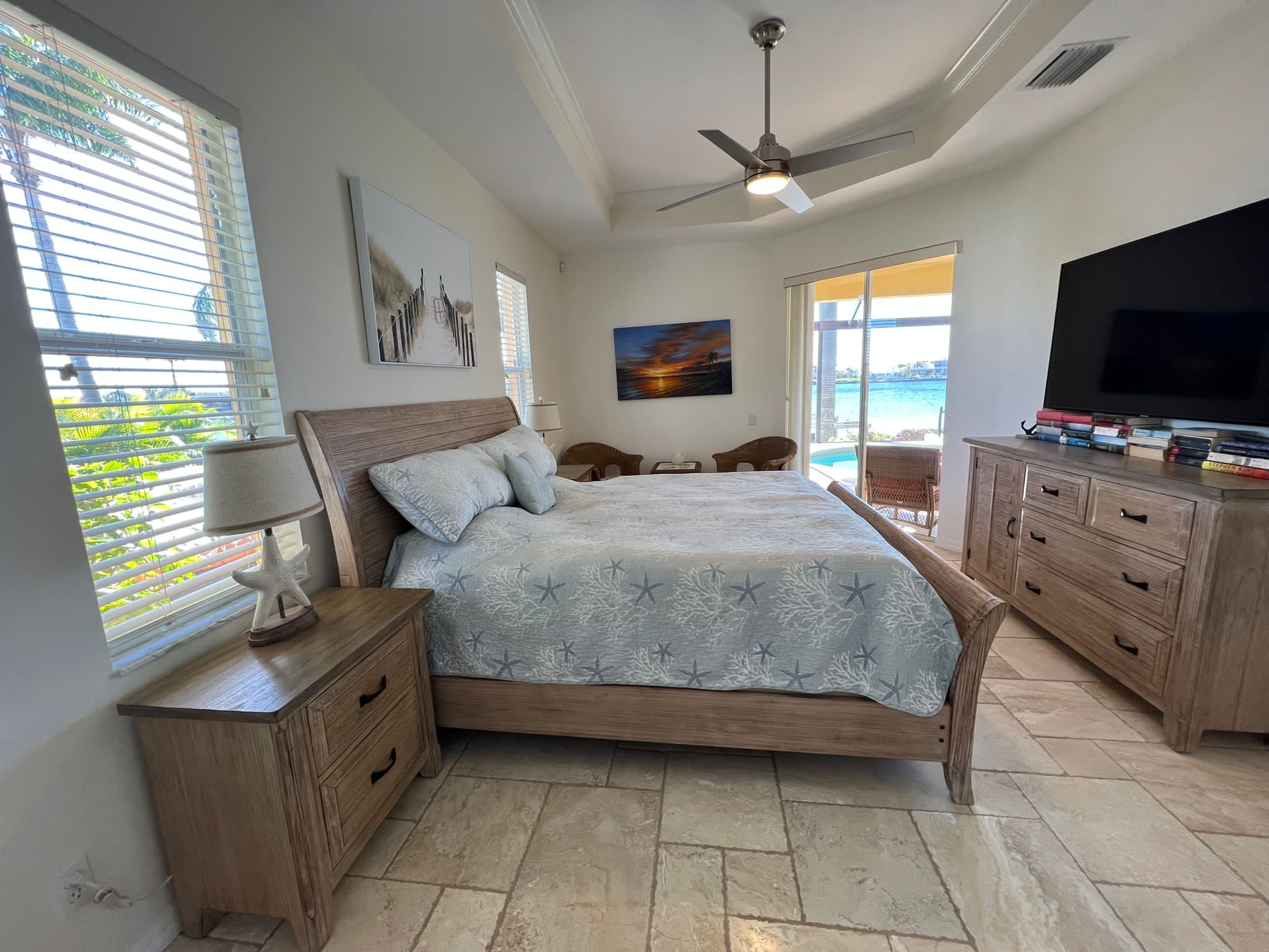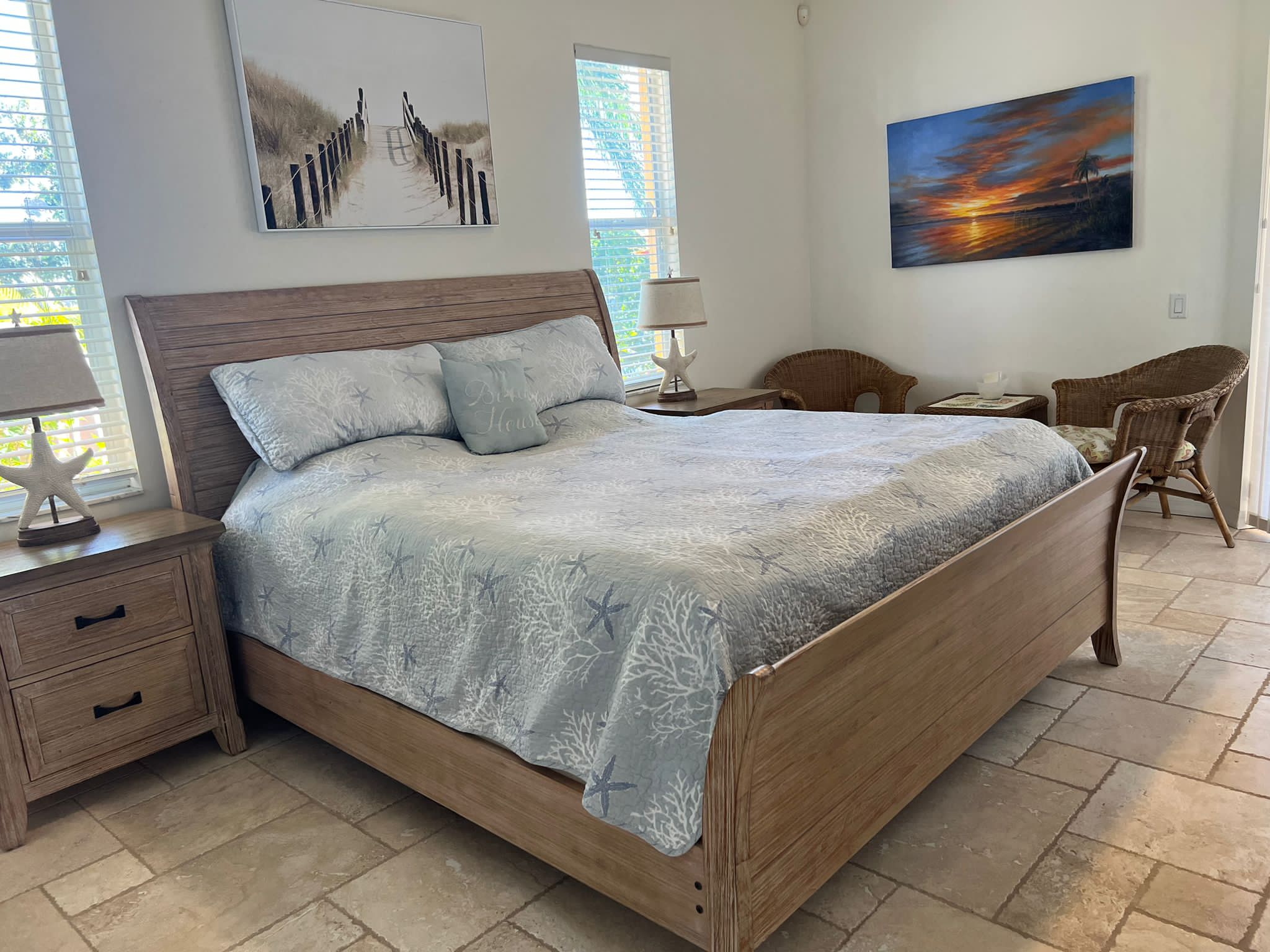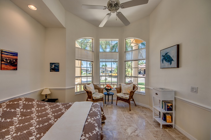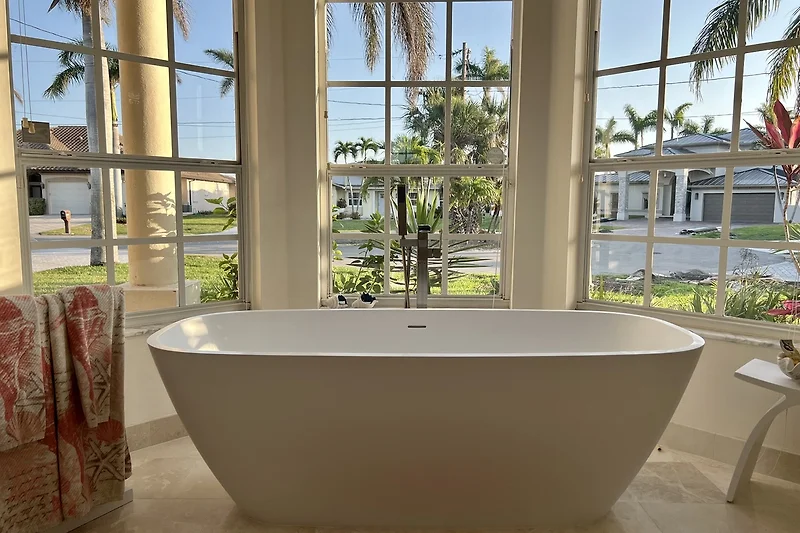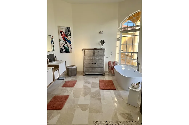 Drei Schlafzimmer und ein Büro mit einer zusätzlichen Schlafgelegenheit bieten ausreichend Platz für bis zu 7 Gäste. Direkt vom Masterschlafzimmer gelangen Sie in das große Masterbad mit geräumiger Dusche und Badewanne. Das Masterschlafzimmer und ein weiteres Schlafzimmer, ebenfalls mit Kingbett haben einen direkten Zugang zur Terrasse.